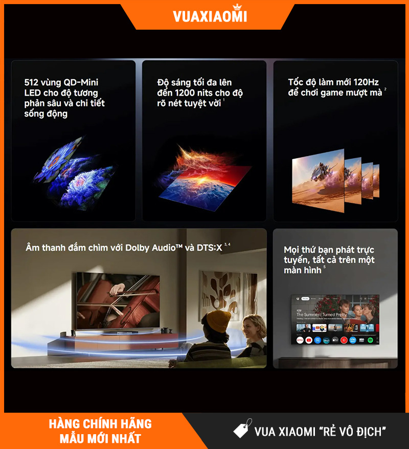 Với kích thước 75 inch, sản phẩm mang lại cảm giác hình ảnh rộng mở hơn hẳn so với các mẫu TV cỡ phổ biến. Nhưng điểm đáng nói là Xiaomi không chỉ tập trung vào kích thước. Mẫu TV này còn được hoàn thiện bằng một loạt công nghệ có tính nền tảng như Mini LED, độ sáng cao 1200 nits, QLED Quantum Dot, bộ xử lý hình ảnh chuyên biệt, cùng nền tảng Google TV và các tính năng chia sẻ nội dung đa thiết bị. Điều đó khiến chiếc TV này không chỉ hợp để xem phim, mà còn phù hợp với người yêu thể thao, game thủ, gia đình có nhiều thiết bị thông minh và những ai muốn trải nghiệm giải trí ở mức cao hơn.