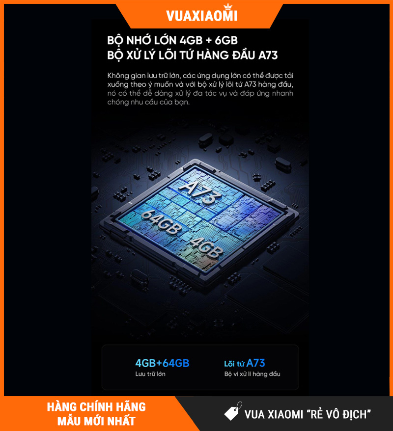 | Chip xử lý | Bộ vi xử lý lõi tứ Cortex-A73 |