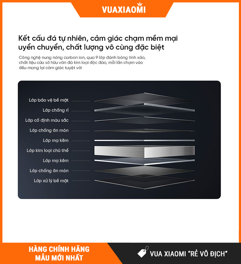 Chất liệu đá phiến kim loại (rock metal slate) cao cấp – không bám vân tay, dễ vệ sinh