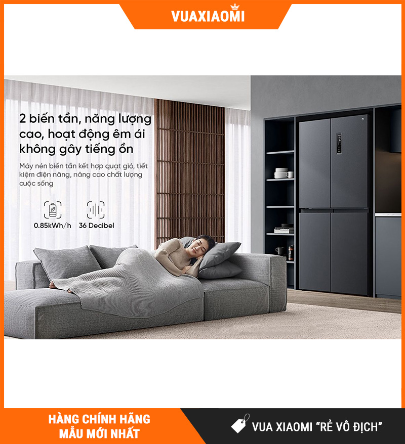 Tủ lạnh Xiaomi Mijia 430L sử dụng máy nén chất lượng cao, hoạt động ổn định và độ ồn cực thấp chỉ ~36dB – gần như không nghe thấy tiếng khi vận hành.