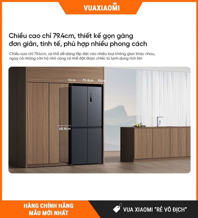 Tuy sở hữu dung tích lớn 430 lít, nhưng Xiaomi Mijia 430L có kích thước thiết kế cực kỳ tối ưu: